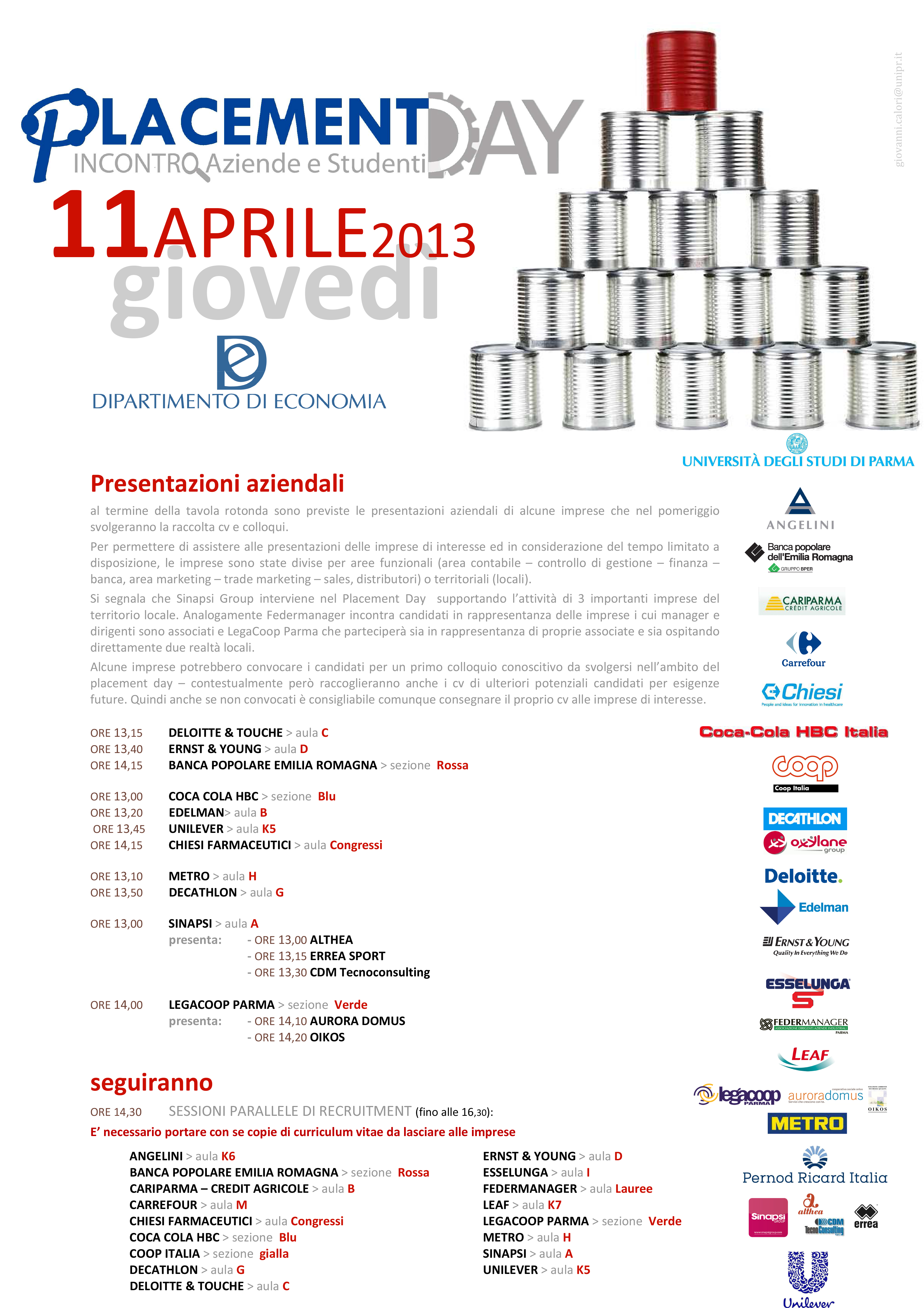 Via Kennedy, 6 – Parma placementdsea@unipr.it
